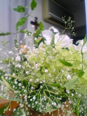 私、「カスミソウ」が好きで、今日のお花のアジサイの周りでポワポワしてたのが非常に気に入りました。張り切って撮りまくりましたので、ご賞味くださいませ。