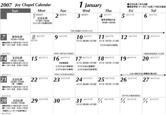 2007年1月の月間スケジュールです。