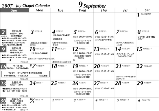 2007年9月の月間スケジュール